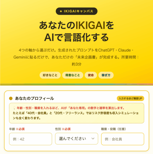 この4つを選ぶだけで、AIがあなたのIKIGAIの輪郭を描いてくれます。